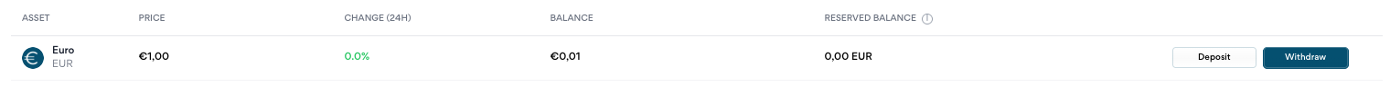 Om euro’s op te kunnen nemen, moet je eerst een EUR-balans in je Knaken-account hebben. Dit kan bijvoorbeeld het resultaat zijn van verkochte crypto, of resterende euro’s die al in je account stonden.